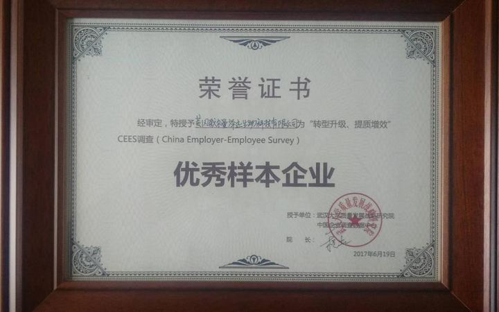 優(yōu)秀樣本企業(yè)榮譽(yù)證書